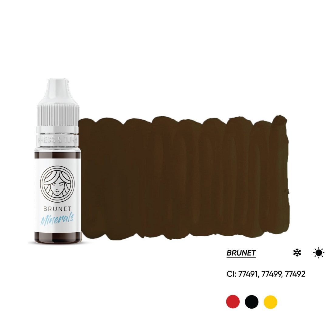 BRUNETTE features a pure mineral formula with 50–60% retention, free from organic additives, ensuring fast and even fading from the skin without gray shades. The pigment is REACH-compliant, meets strict European safety standards, and delivers predictable, professional results best suited for experienced PMU artists